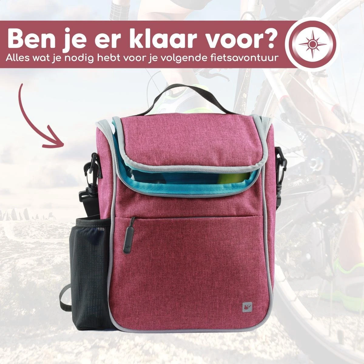 Je ontvangt een roze fietstas van Bablue waarbij je 5 liter aan opbergruimte hebt. Groot genoeg om alles in mee te nemen wat je nodig hebt, maar wel weer zo handzaam dat je niet het idee hebt dat je echt een grote rugzak bij je hoeft te dragen.