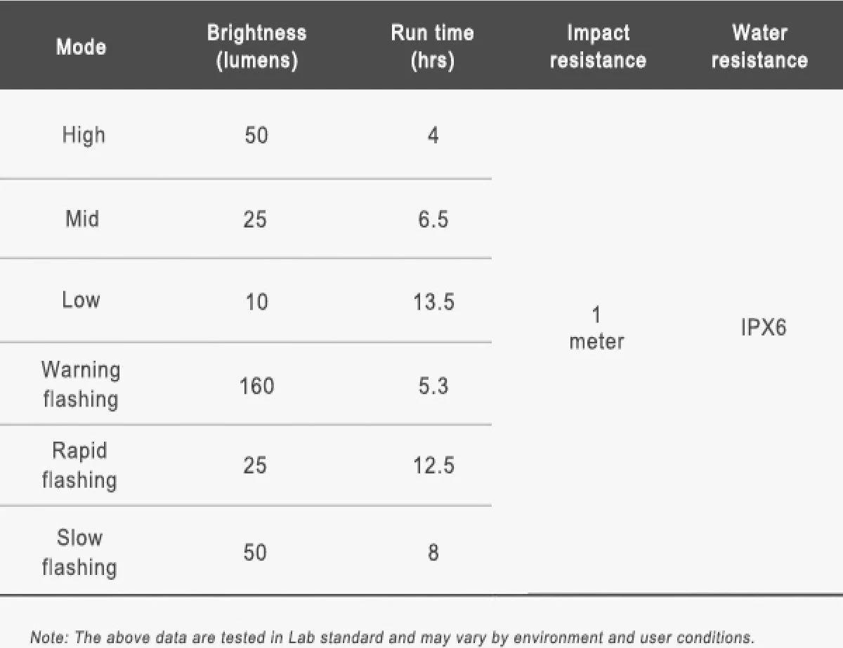 De FR160 is een licht gewicht en makkelijk te gebruiken fietslampje voor overdag gebruik. Met de zeer efficiente COB LED’s (max 160 lumen) en het speciale design van het oogverblindende waarschuwings knipper licht, zorgt dit ervoor dat een fietser meer gezien wordt overdag!