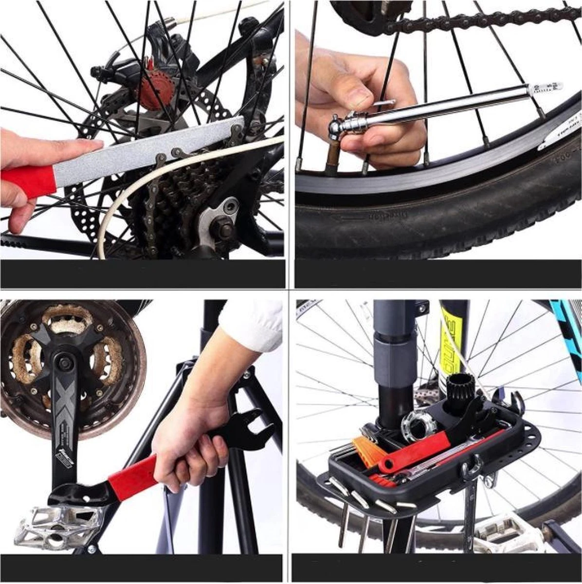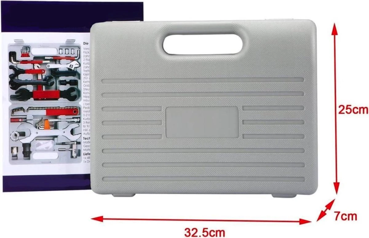 Deze prachtige set wordt geleverd in een lichtgewicht koffertje en weegt alles bij elkaar slechts 3.1 kg. Mocht je een fietsvakantie hebben gepland, dan mag deze set niet ontbreken, maar ook thuis zal de set regelmatig van pas komen. Het gereedschap is gemaakt van hard staal, dat lichtgewicht is met een hoge hardheid, waardoor het gereedschap lang meegaat. Het gereedschap is multifunctioneel en niet alleen te gebruiken voor het sleutel aan je fiets maar is ook geschikt voor e-bikes, scooters en andere kleine voertuigen.